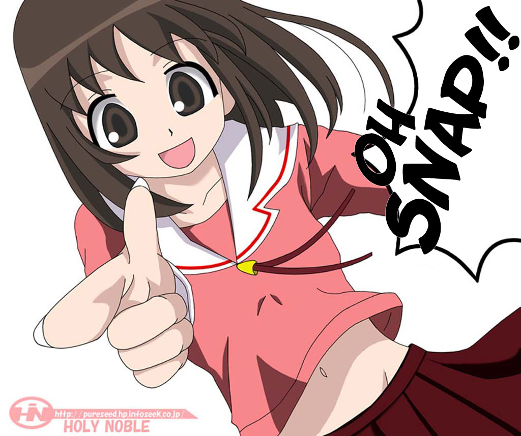 Description: A girl in a pink shirt pointing at the camera with a smile on her face and a hand up.
