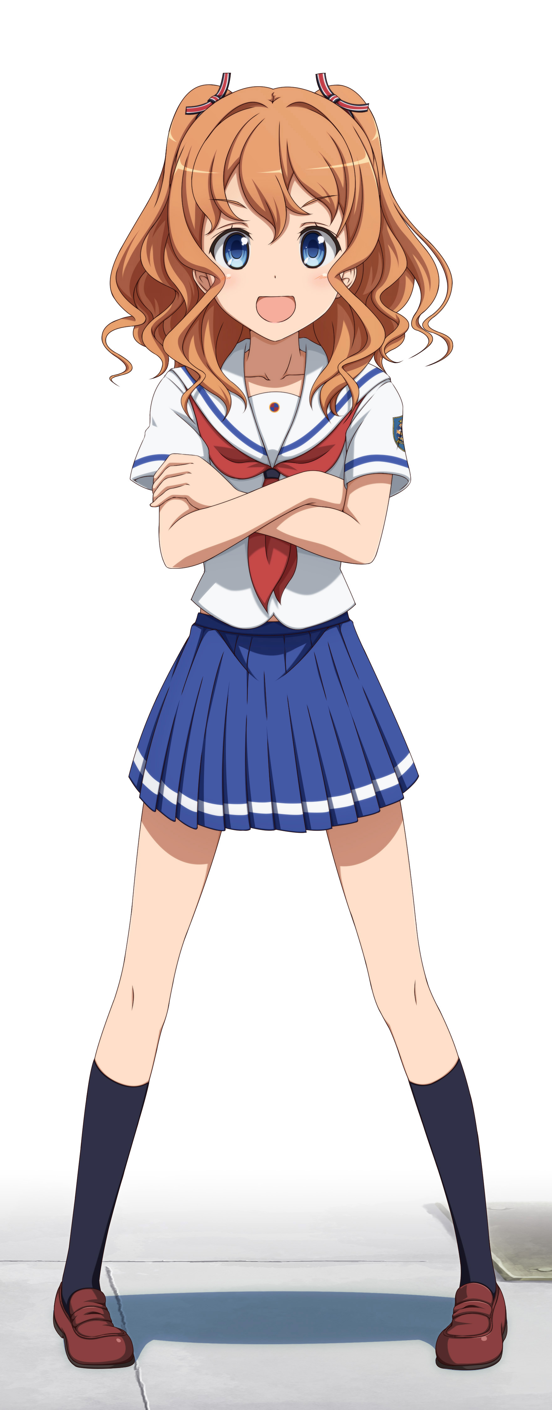 Description: A girl in a sailor outfit with her arms crossed and a heart on her chest.
