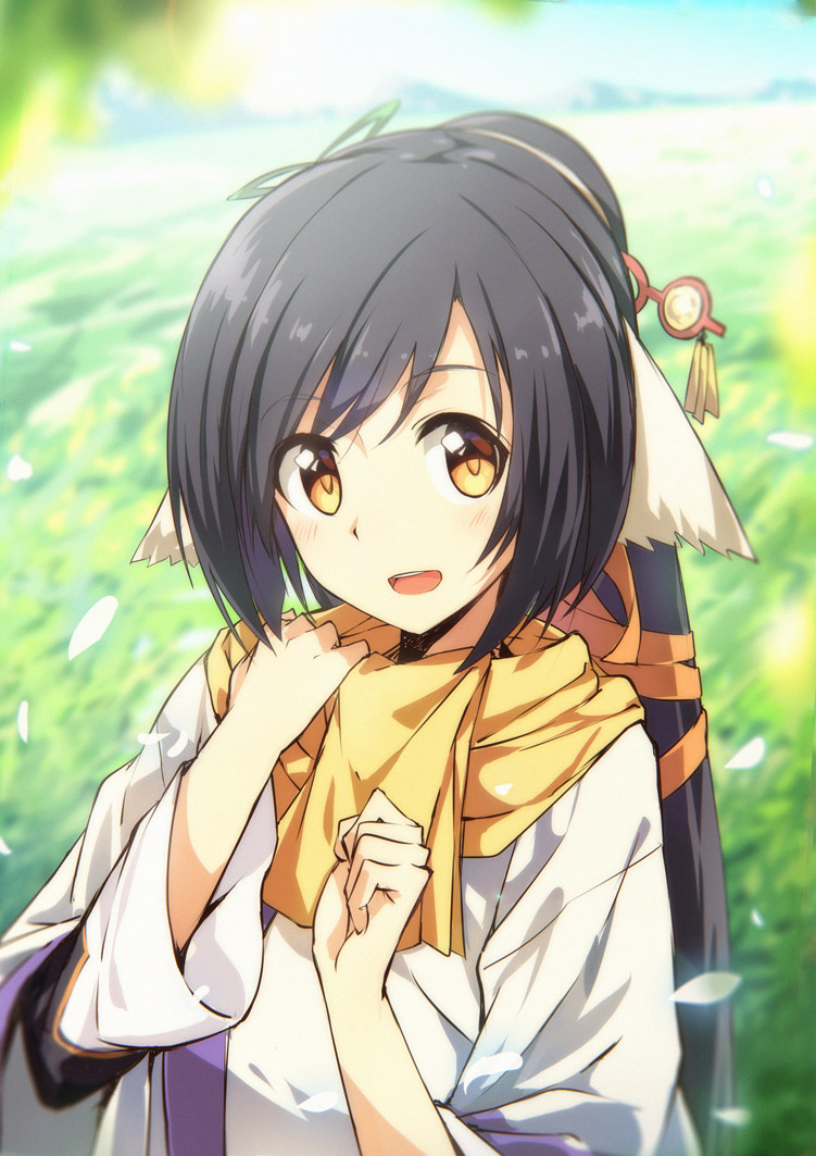 Description: A girl with a scarf around her neck and a backpack on her shoulder.