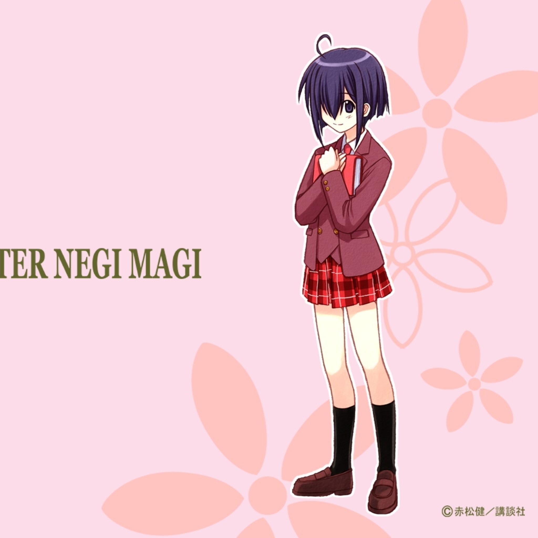Description: A girl in a school uniform with her arms crossed and her head tilted to the side.