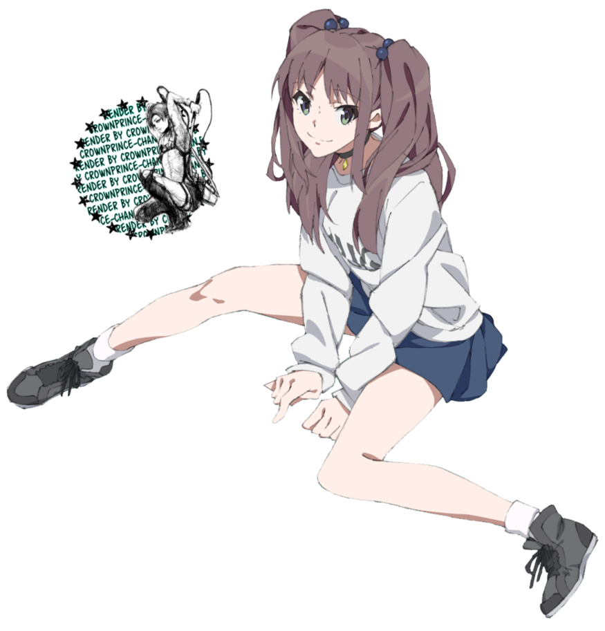 Description: A girl sitting on the ground with her legs crossed and a cat in the background with a caption.