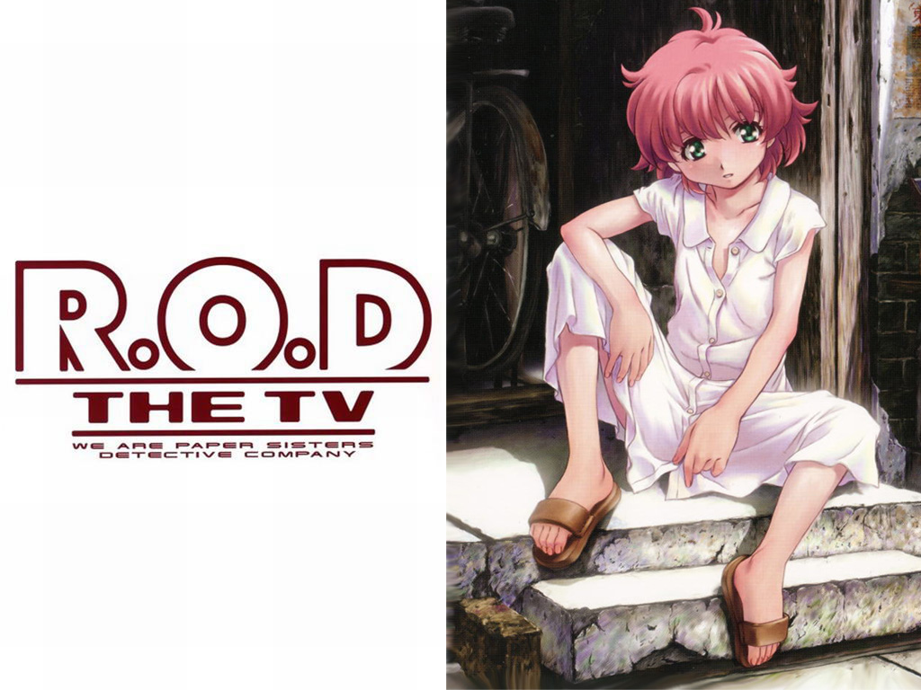 Description: A girl sitting on a step with her feet up and a red sign above her reading the tv the anime series.