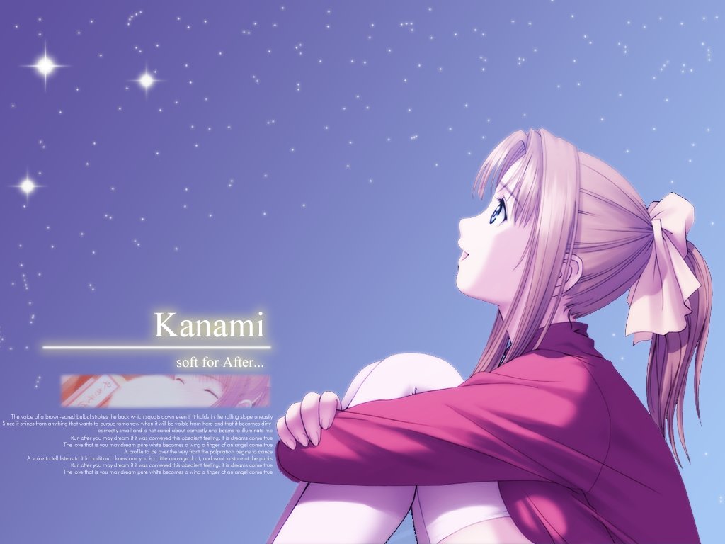 Description: A girl sitting on a ledge looking up at the sky with stars in the background and a message written in the bottom corner.