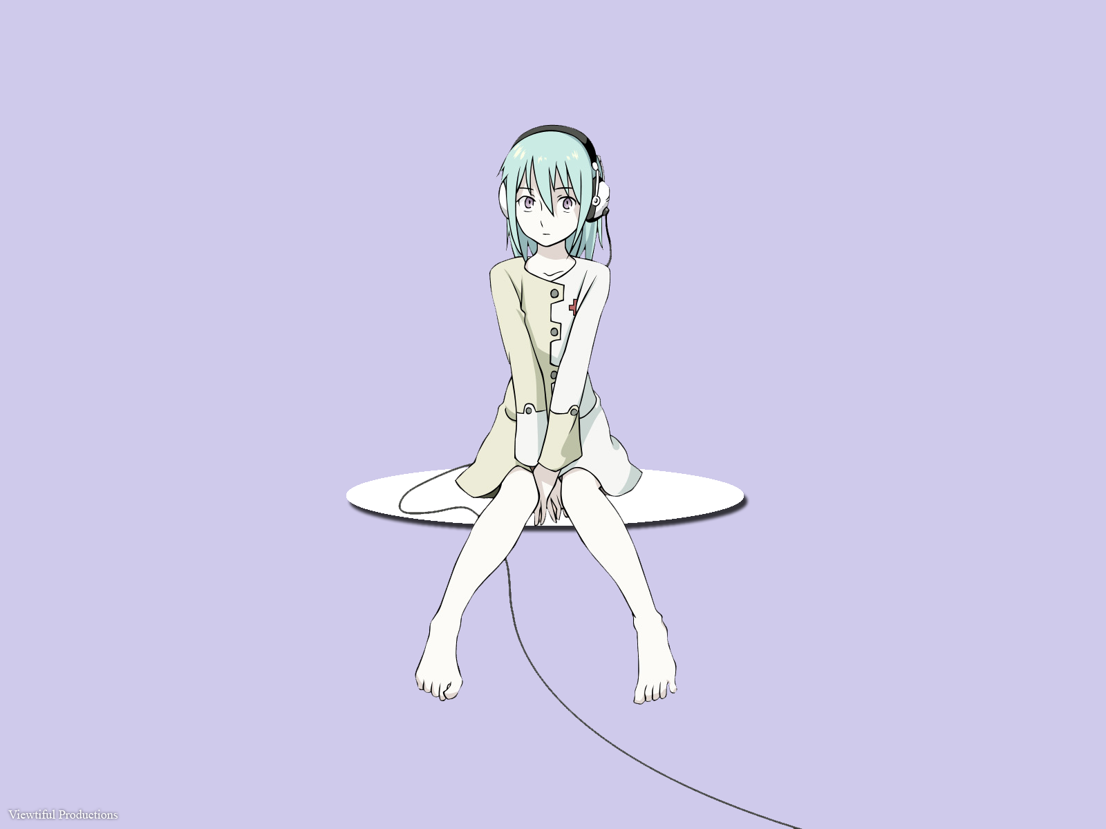 Description: A girl sitting on a surfboard with headphones on her ears and a pink background is shown in the foreground.