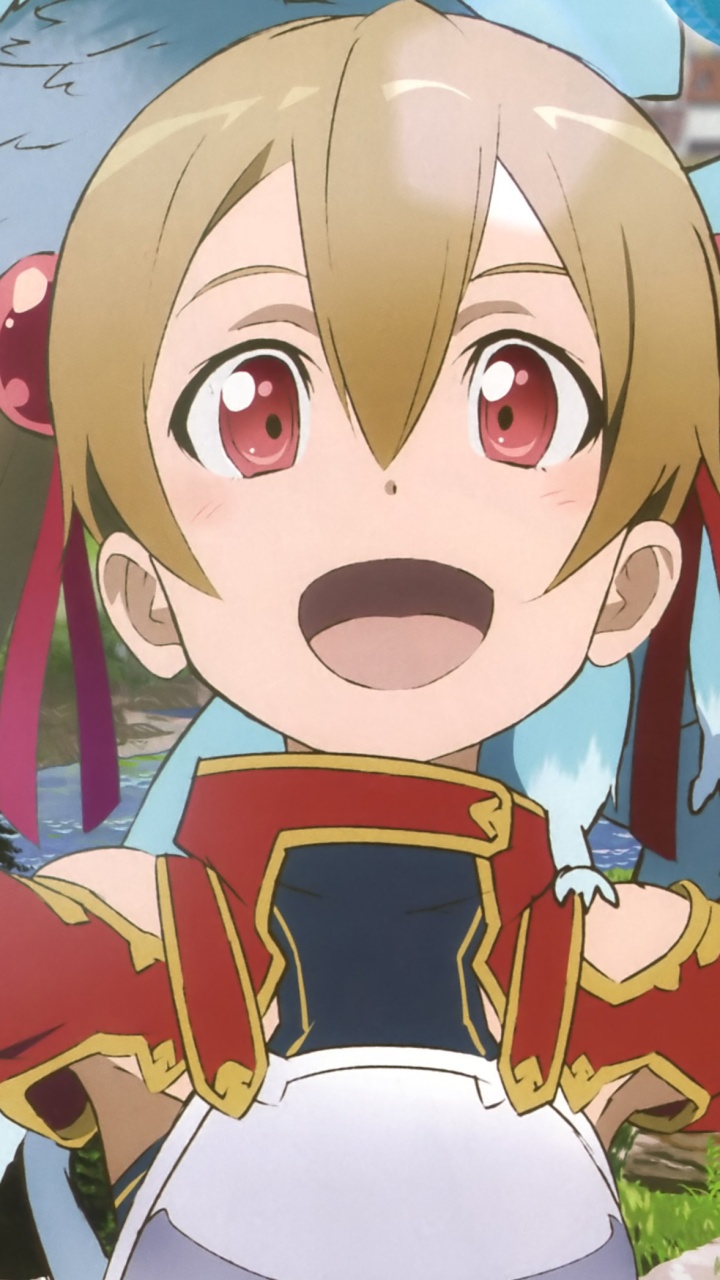 Description: A girl in a uniform with a bird on her shoulder and a bird on her shoulder behind her back.