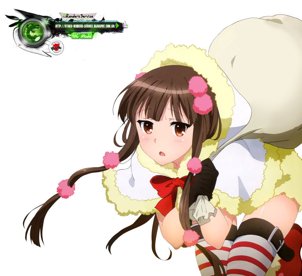Description: A girl in a white dress with a red and white striped skirt and a white bonnet and a black background.