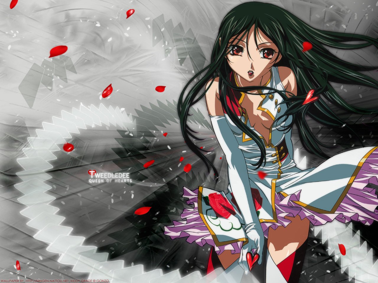 Description: A girl with long hair and a white dress with red petals on her chest and wings.