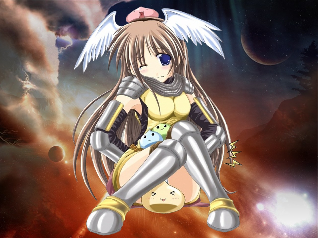 Description: A girl in a yellow top and silver pants holding a stuffed animal in her lap and sitting on a chair.