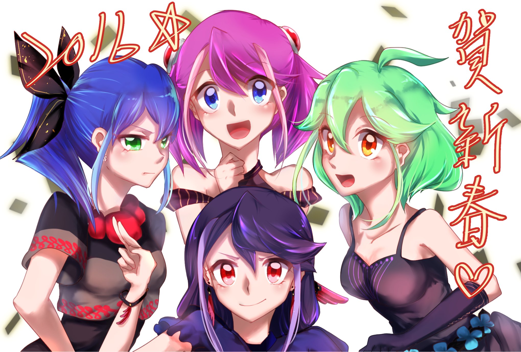Description: A group of girls with different colored hair and bows on their heads.