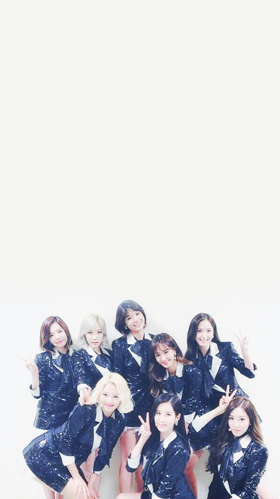 Description: A group of girls posing for a picture together in front of a white background with a black and white photo.