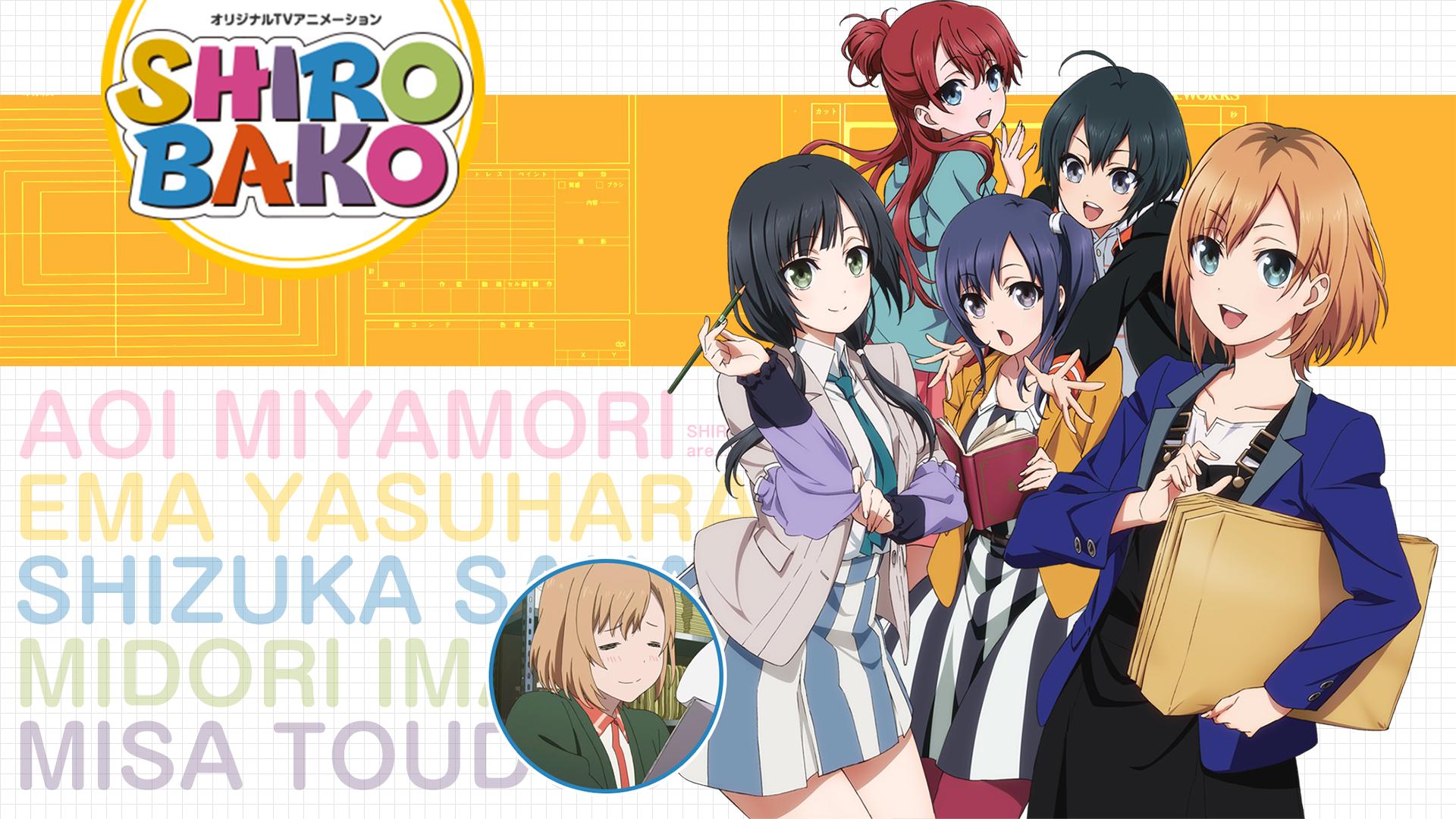 Description: A group of girls standing next to each other in front of a poster with the words shiro bako.