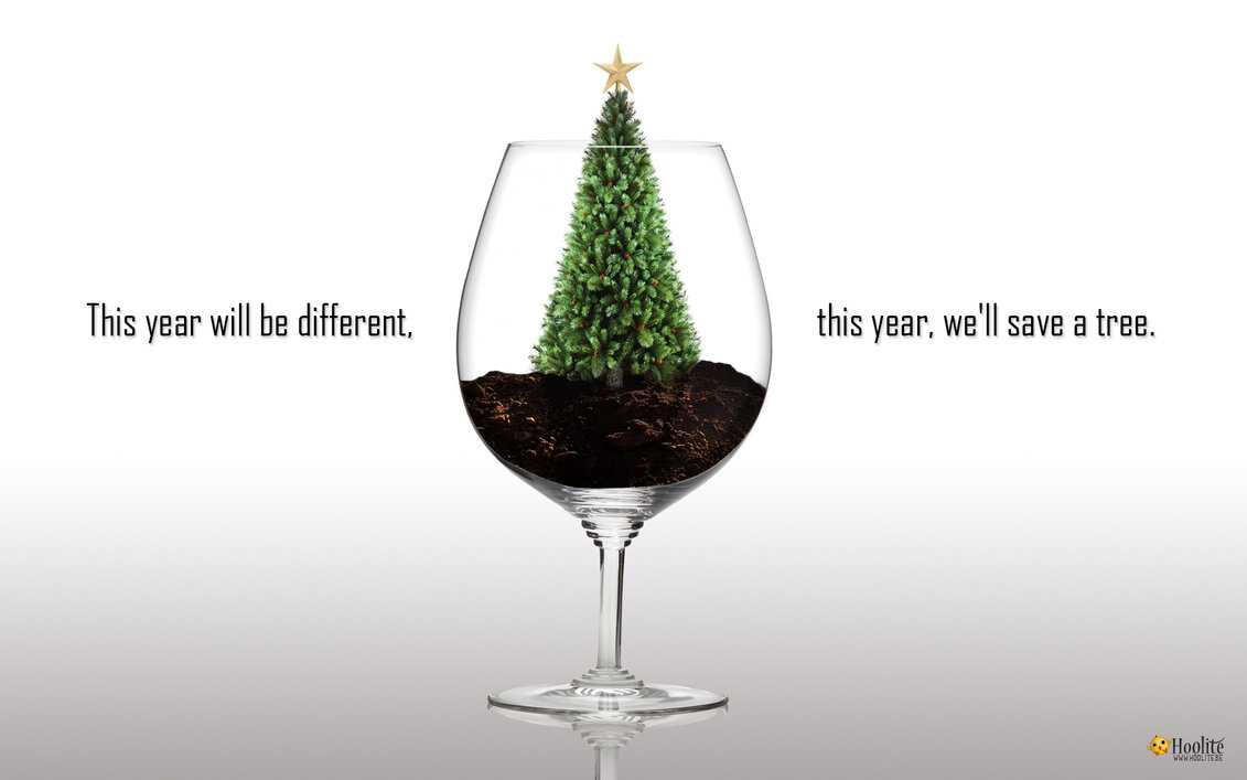 Description: A glass with a small tree in it and a message on the side of it that says.