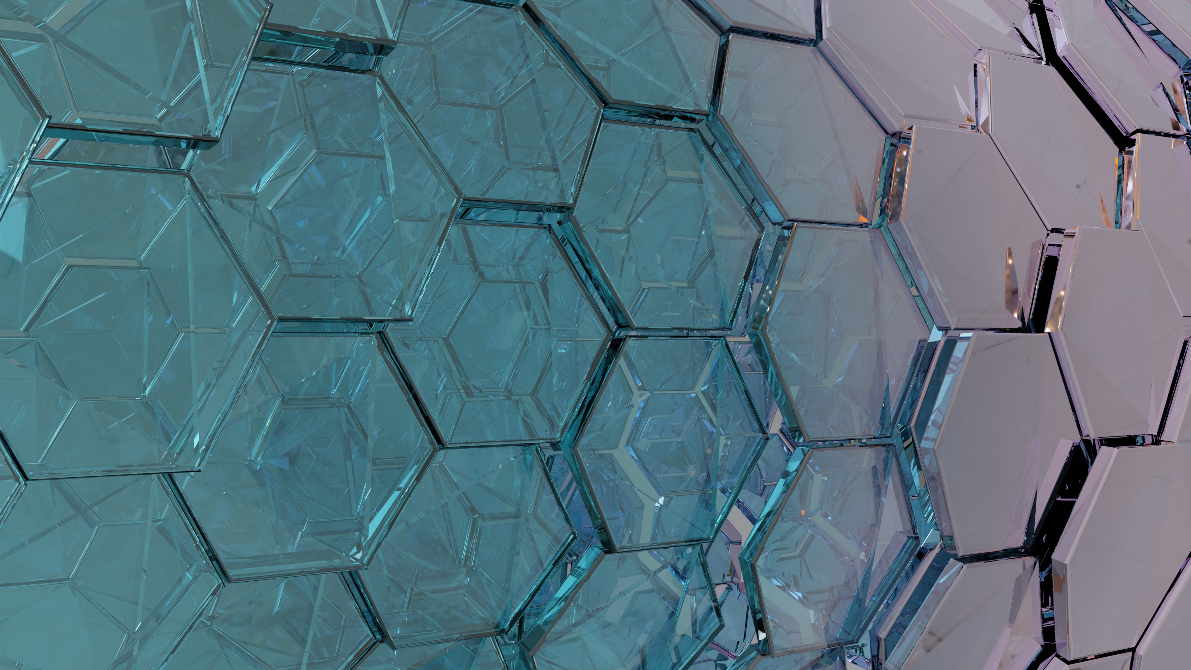 Description: A glass wall with a pattern of hexagonal shapes on it's sides and a blue background.