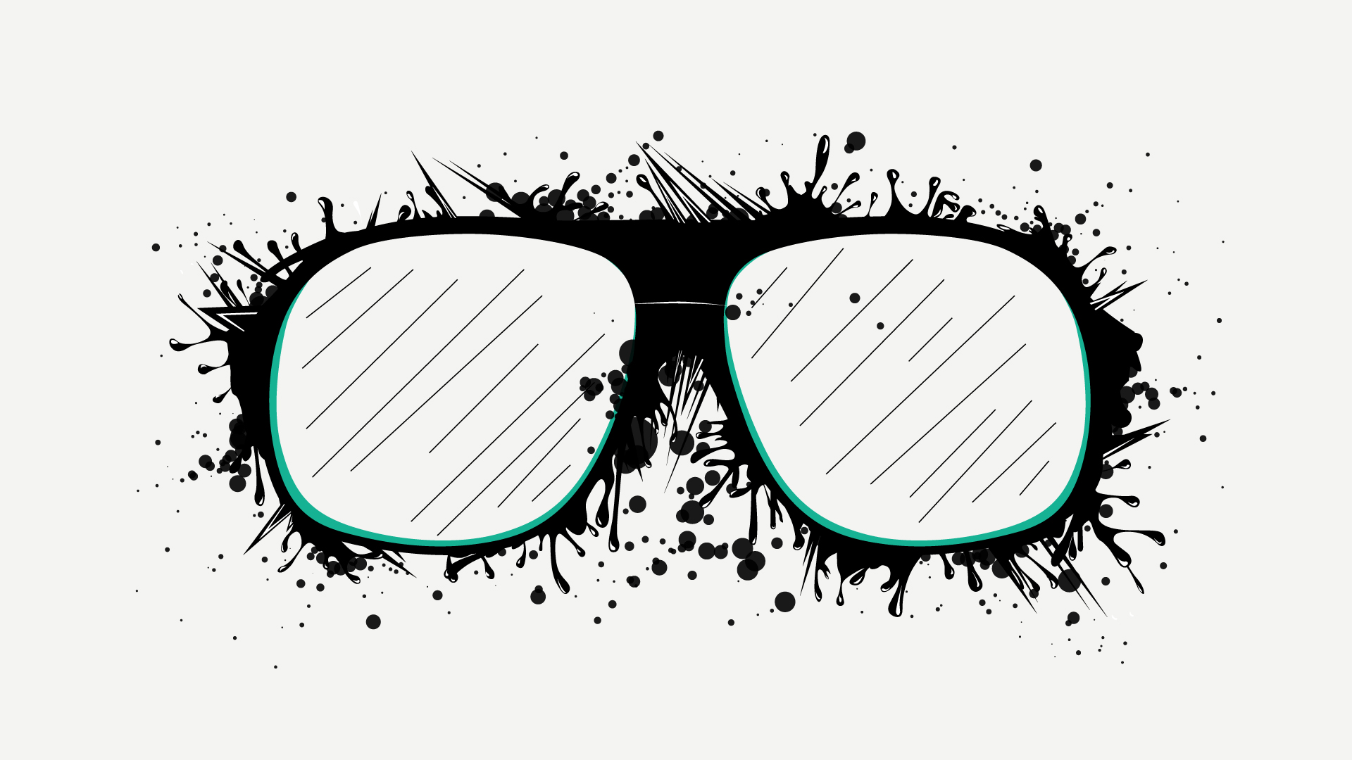 Description: A pair of glasses with a splash of paint on it's side and a pair of glasses with a black frame.