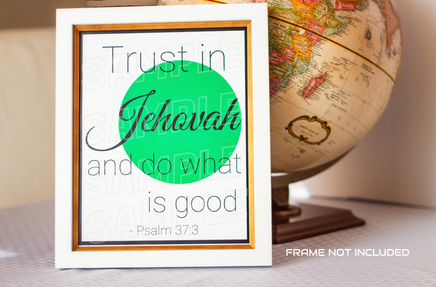 Description: A picture of a globe with a bible verse on it and a framed picture of a globe on a table.