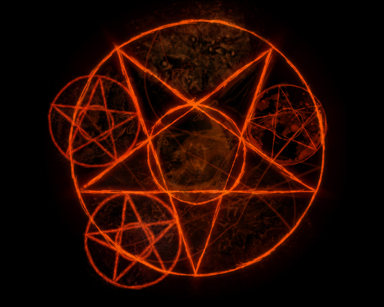 Description: A glowing orange circle with a star in the middle of it on a black background with a black background.
