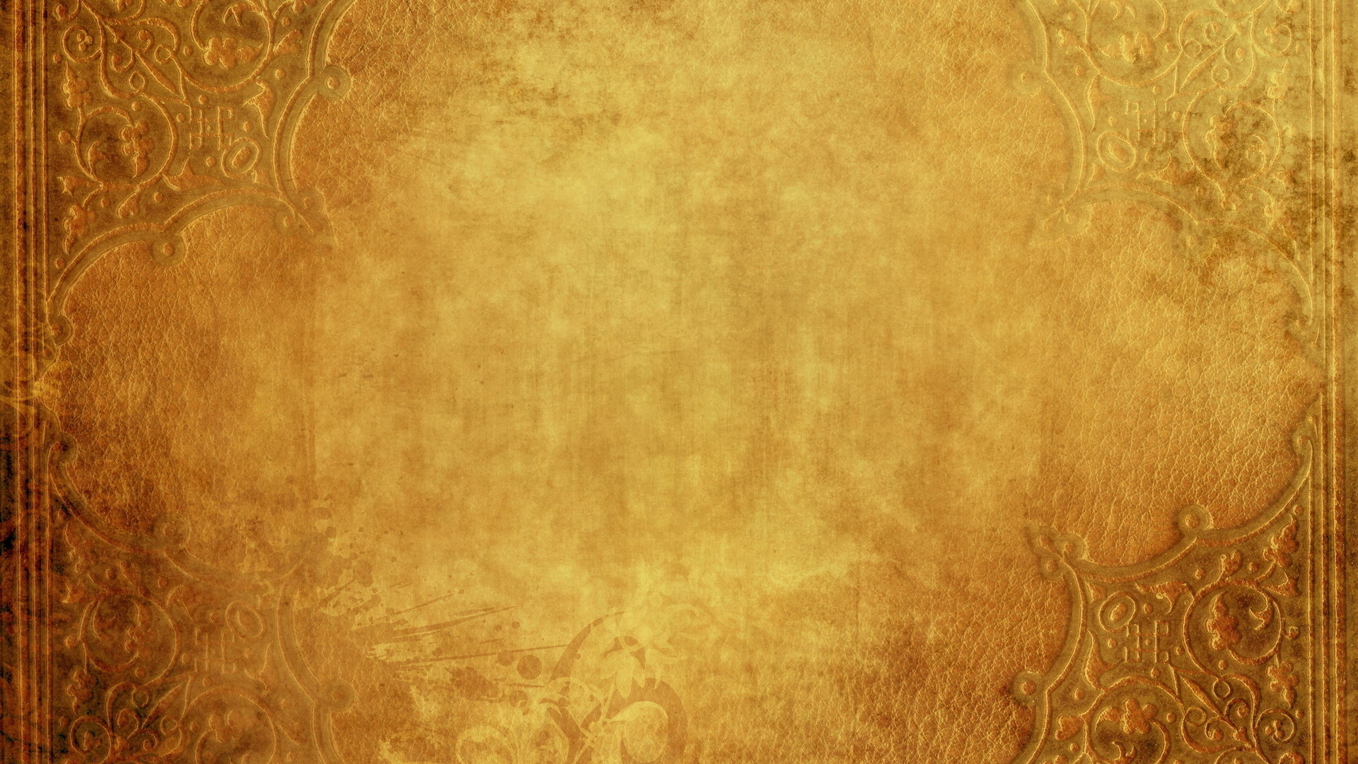 Description: A gold background with a decorative border and a border of flowers and leaves on the edges of the border.