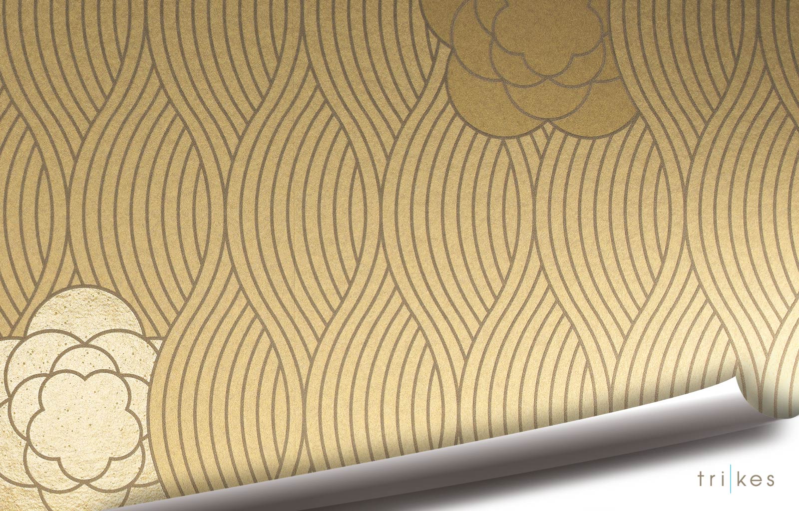Description: A wallpaper with a gold flower on it and a white background with a gold flower on it and a white background with a gold flower.