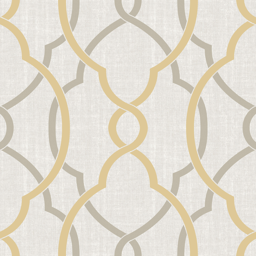 Description: A wallpaper with a gold and grey pattern on it's side and a white background with a gray and gold design.