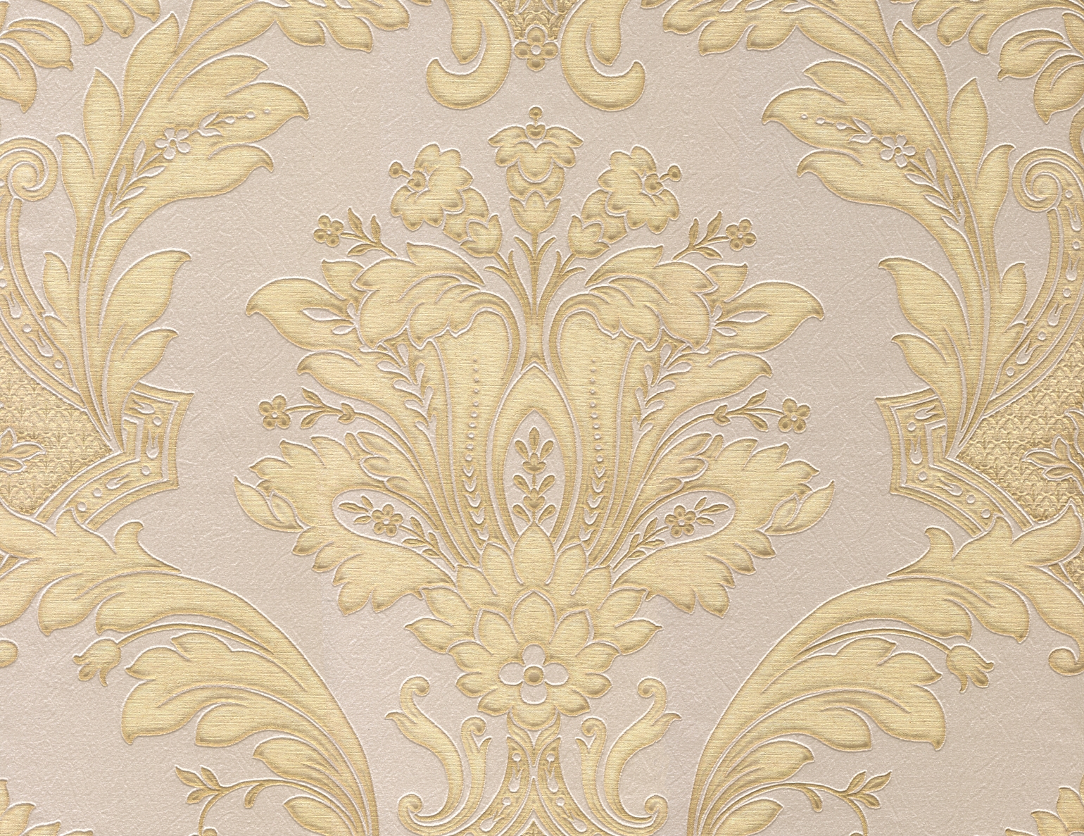 Description: A wallpaper with a gold design on it's side and a clock on the wall behind it.