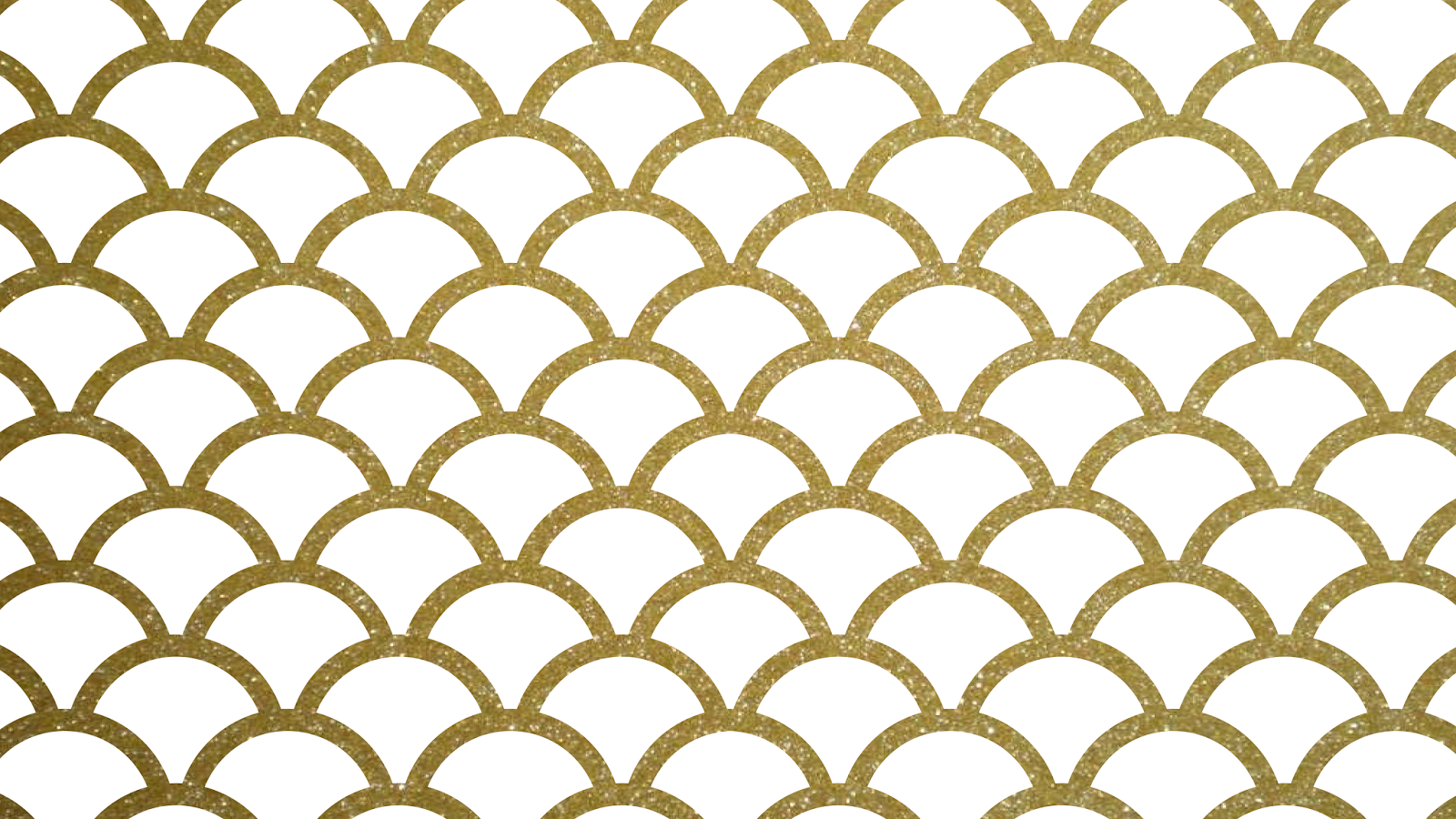 Description: A gold and white background with wavy lines and circles in the middle of it.