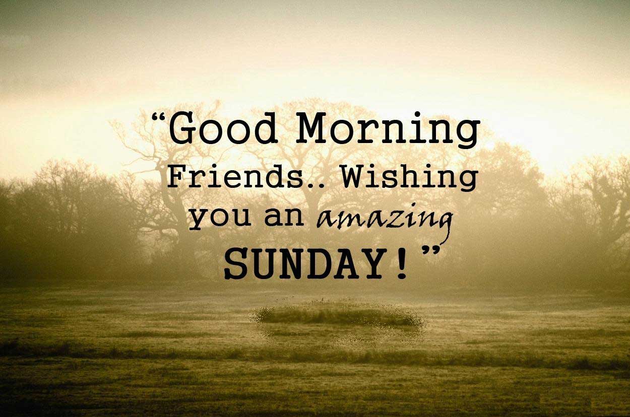 Description: A picture of a field with a quote on it saying good morning friends wishing you an amazing sunday on the picture.