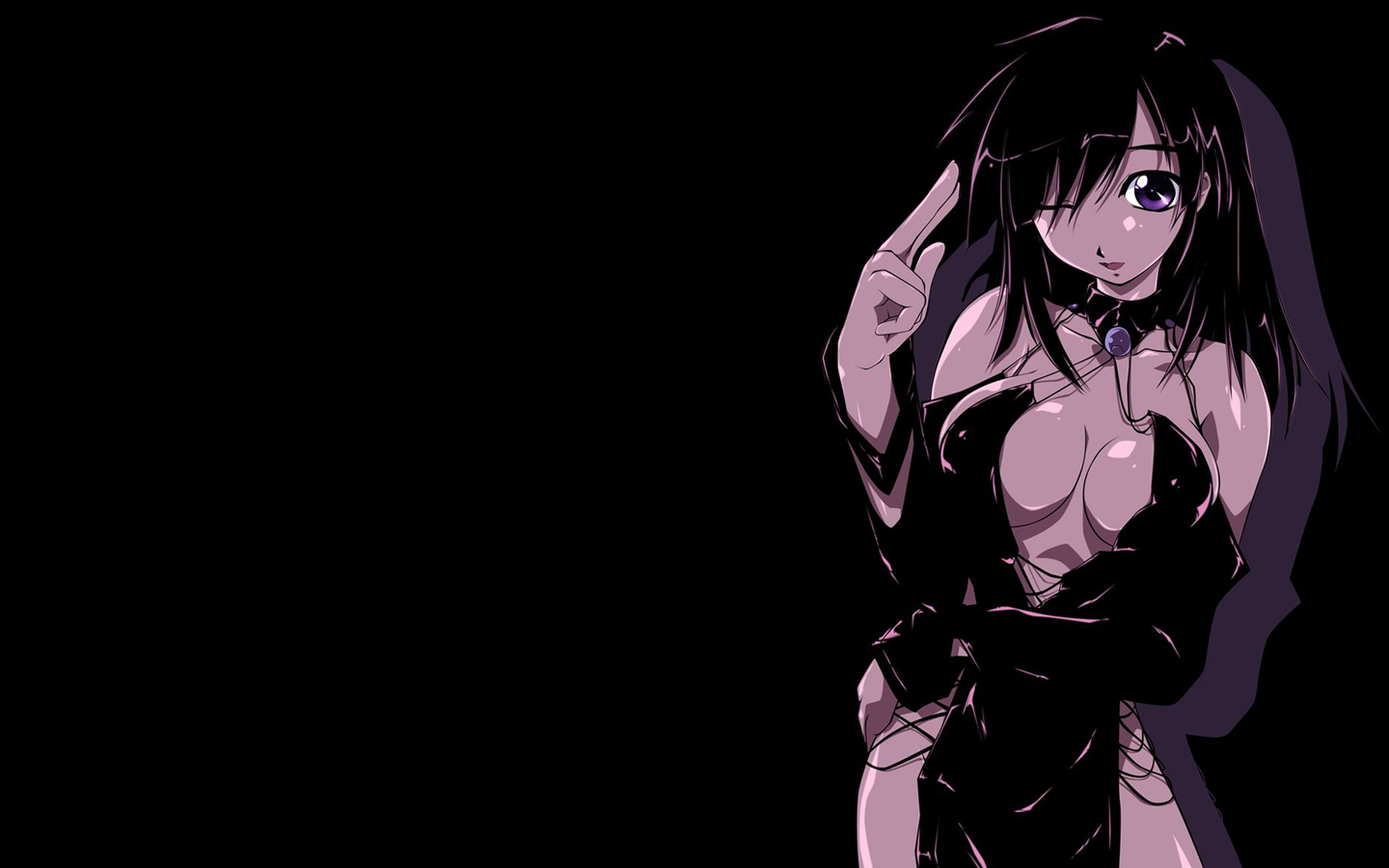 Description: A woman in a black dress with a knife in her hand and a black background with a black background.