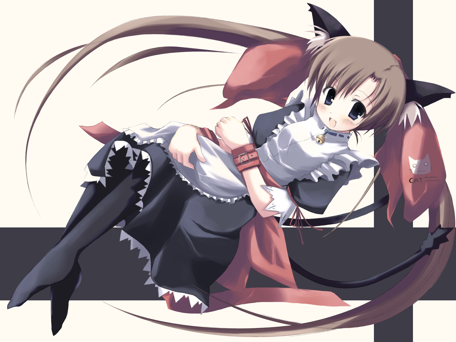 Description: A woman dressed in a costume with a cat tail and a tail tail.