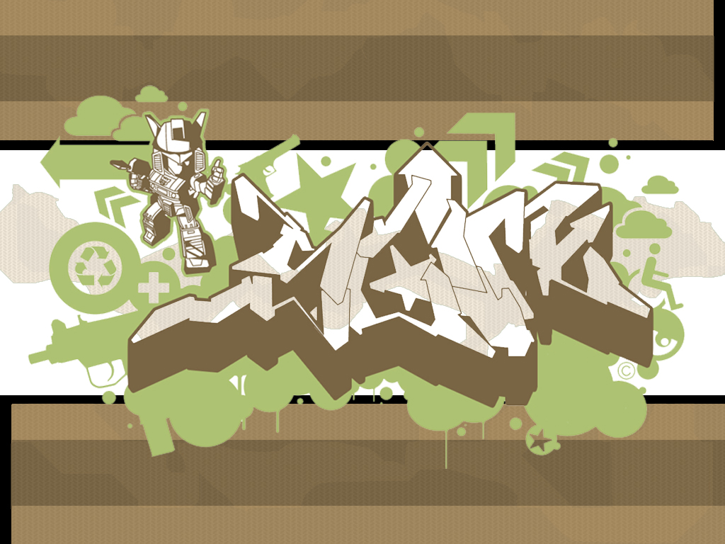 Description: A picture of a graffiti art piece with a man on it's back and a green and white background.