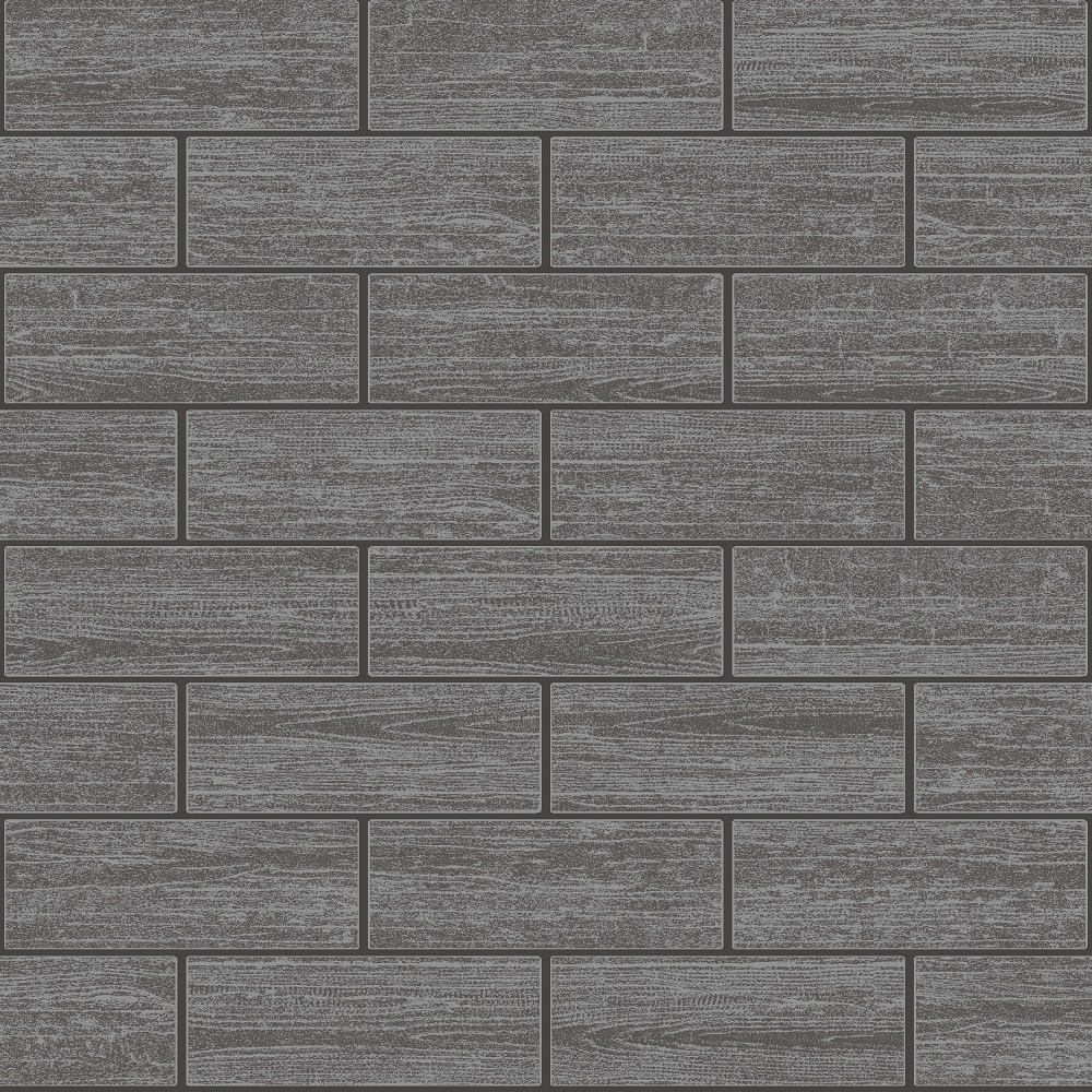 Description: A gray brick wall with a black floor and a white floor tile pattern on it's side.