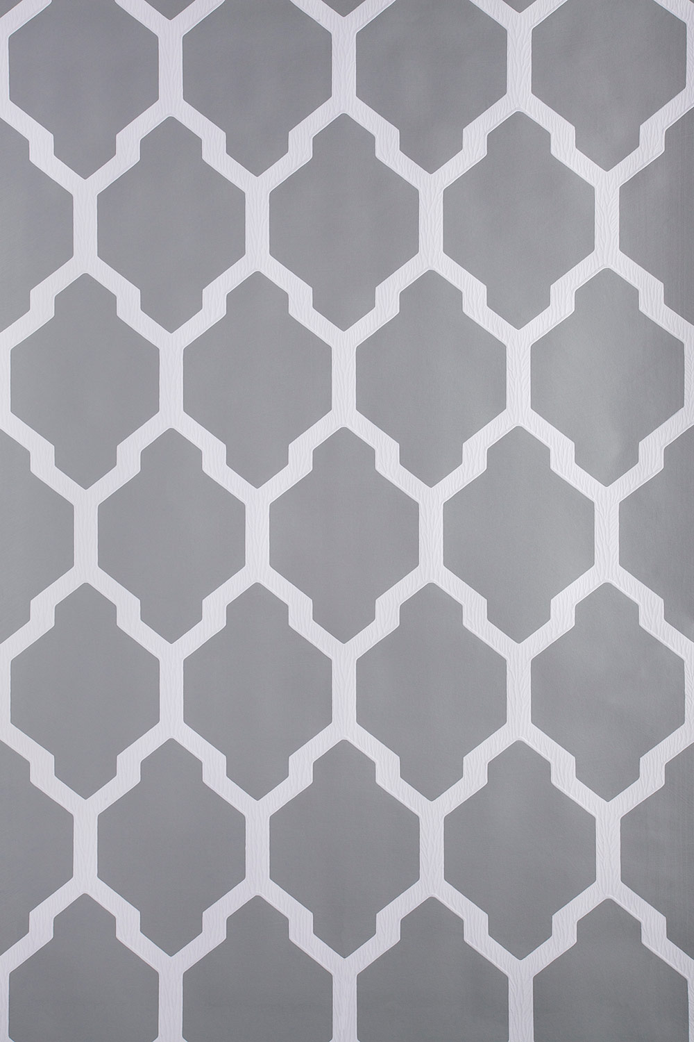 Description: A gray and white wall with a pattern of hexagonal shapes on it.