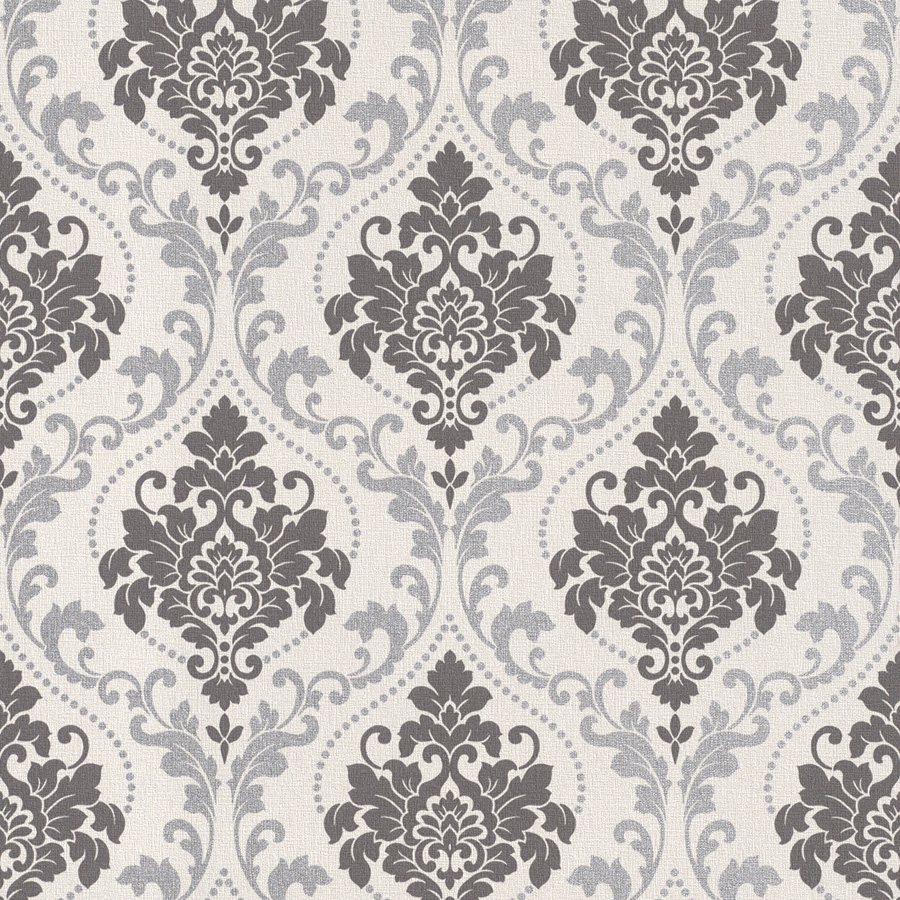 Description: A gray and white wallpaper with a pattern on it's side and a black and white design on the back.