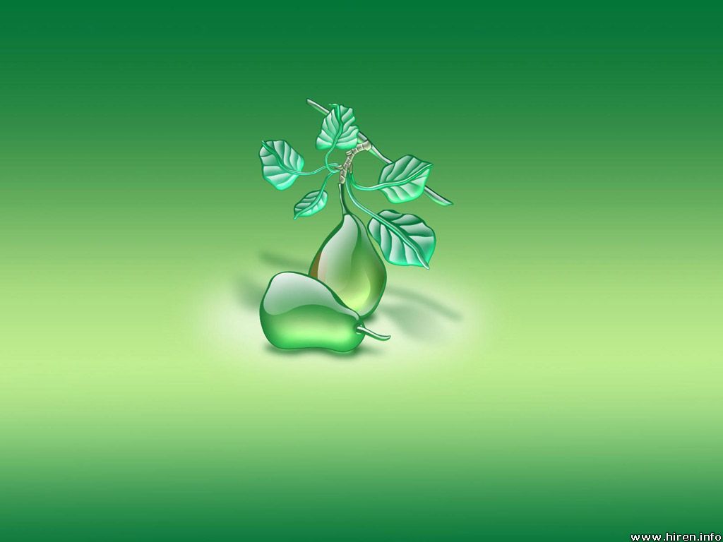 Description: A green apple with leaves on a green background with a green background and a green background with a green apple.