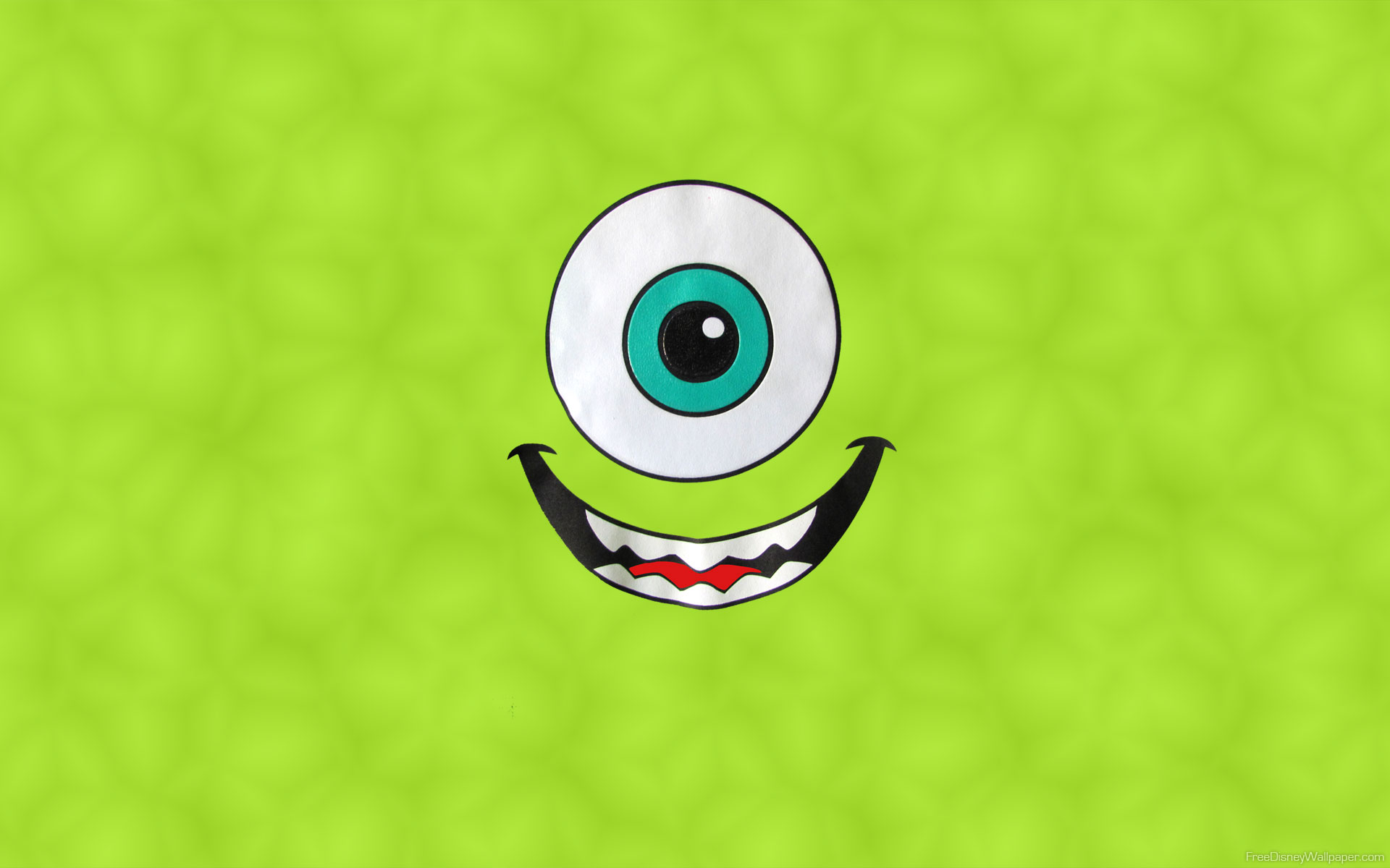 Description: A green background with a cartoon monster's eyes and a black mouth with a red tongue and a black tongue.