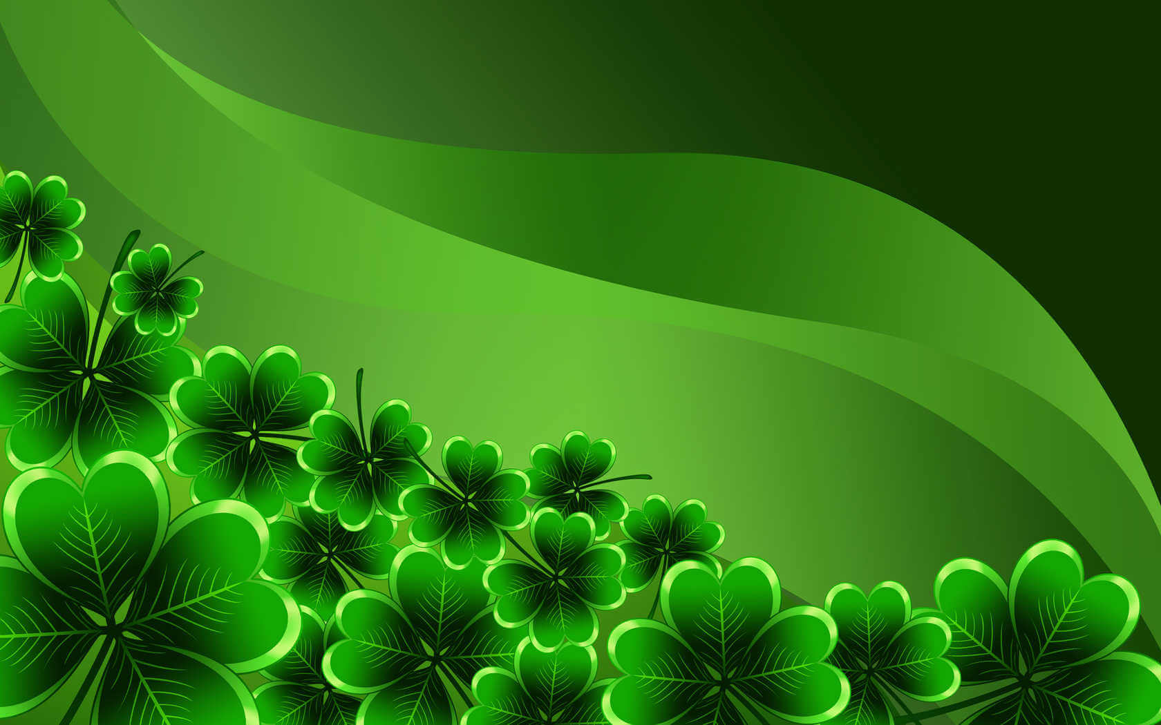Description: A green background with clovers and a wave of light green color in the background is a wavy line.