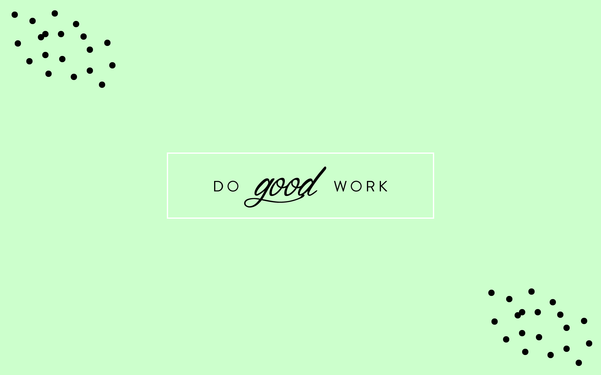 Description: A green background with dots and a black and white quote that says do good work on it's side.