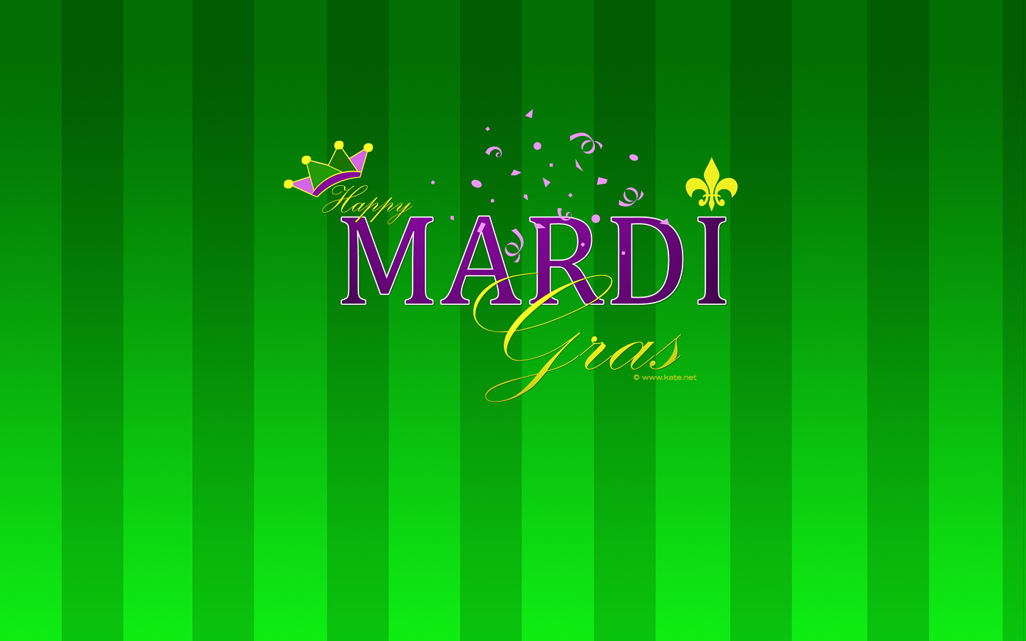 Description: A green background with a mardi gras message on it's side and a gold crown on top.