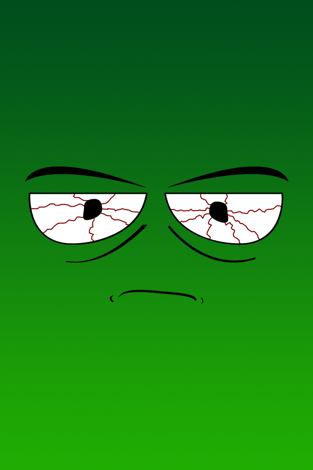 Description: A green background with a sad face with eyes and a frown on it's face.