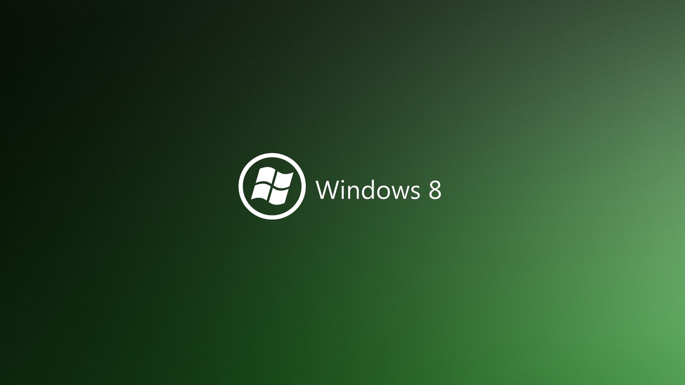 Description: A green background with the windows 8 logo on it and a white circle in the middle of the image.