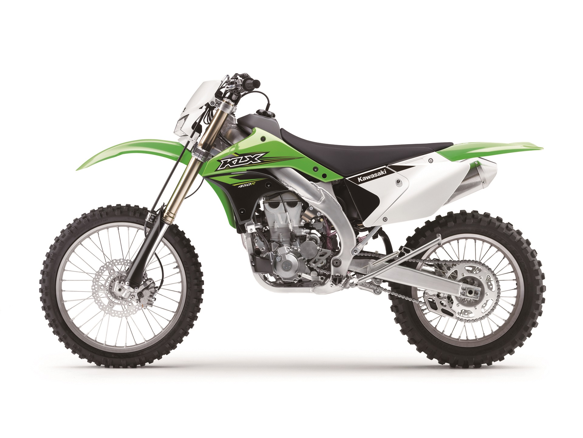 Description: A green and black dirt bike on a white background with a white background and a black and green bike.