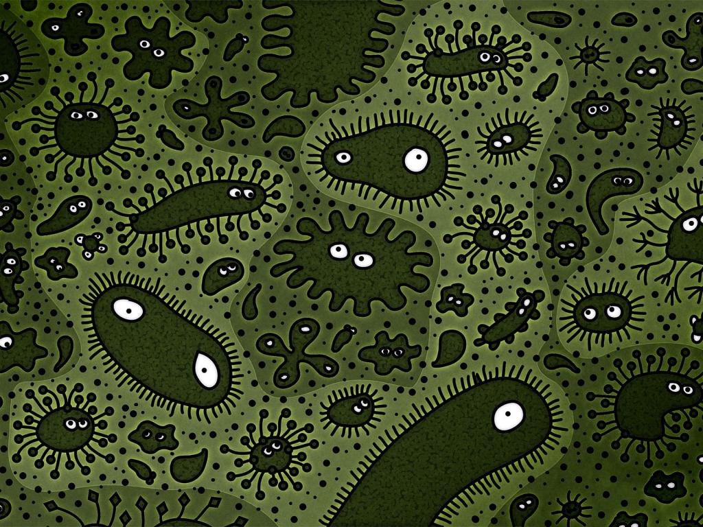 Description: A green and black background with many different types of germs on it.