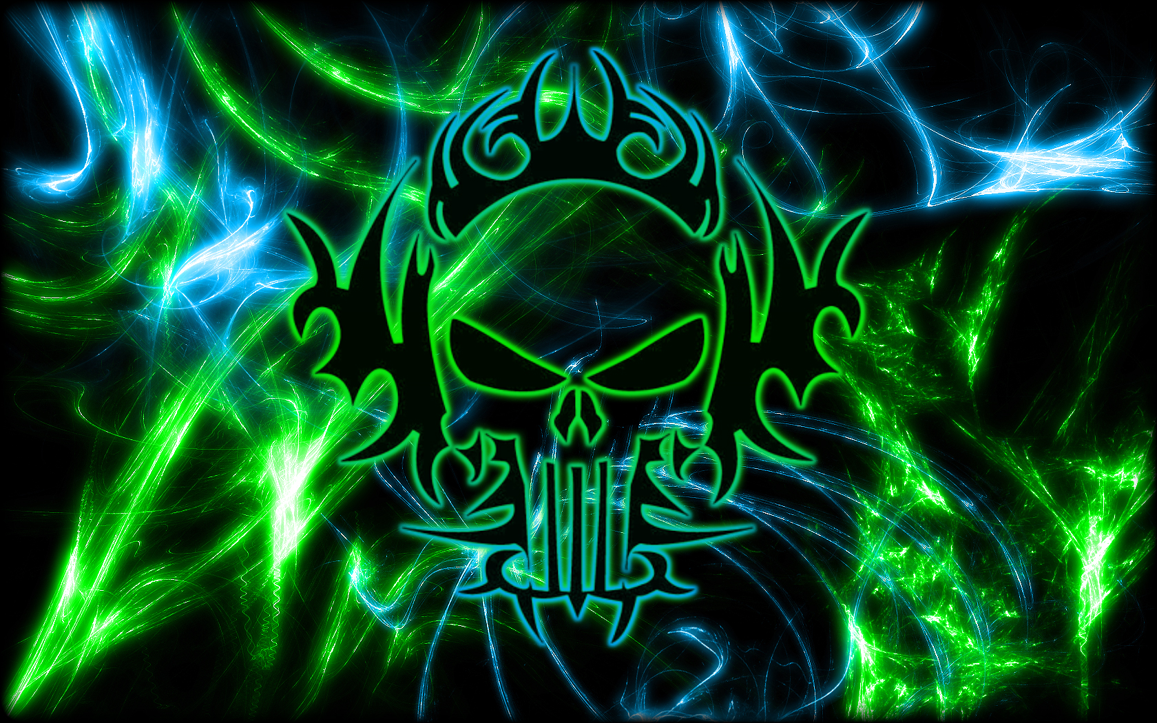 Description: A green and blue abstract background with a skull on it's face and a crown on its head.