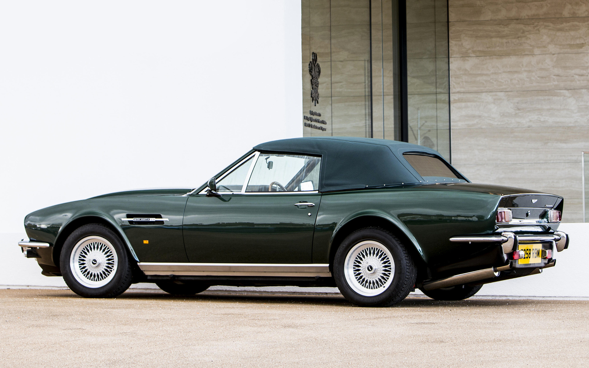 Description: A green car parked in front of a building with a clock on it's side and a car door open.
