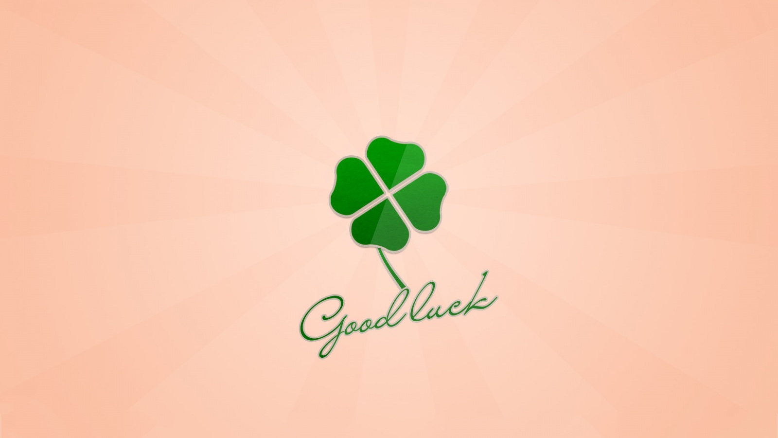 Description: A green clover with the word good luck written on it's side and a green shamrock on the side.