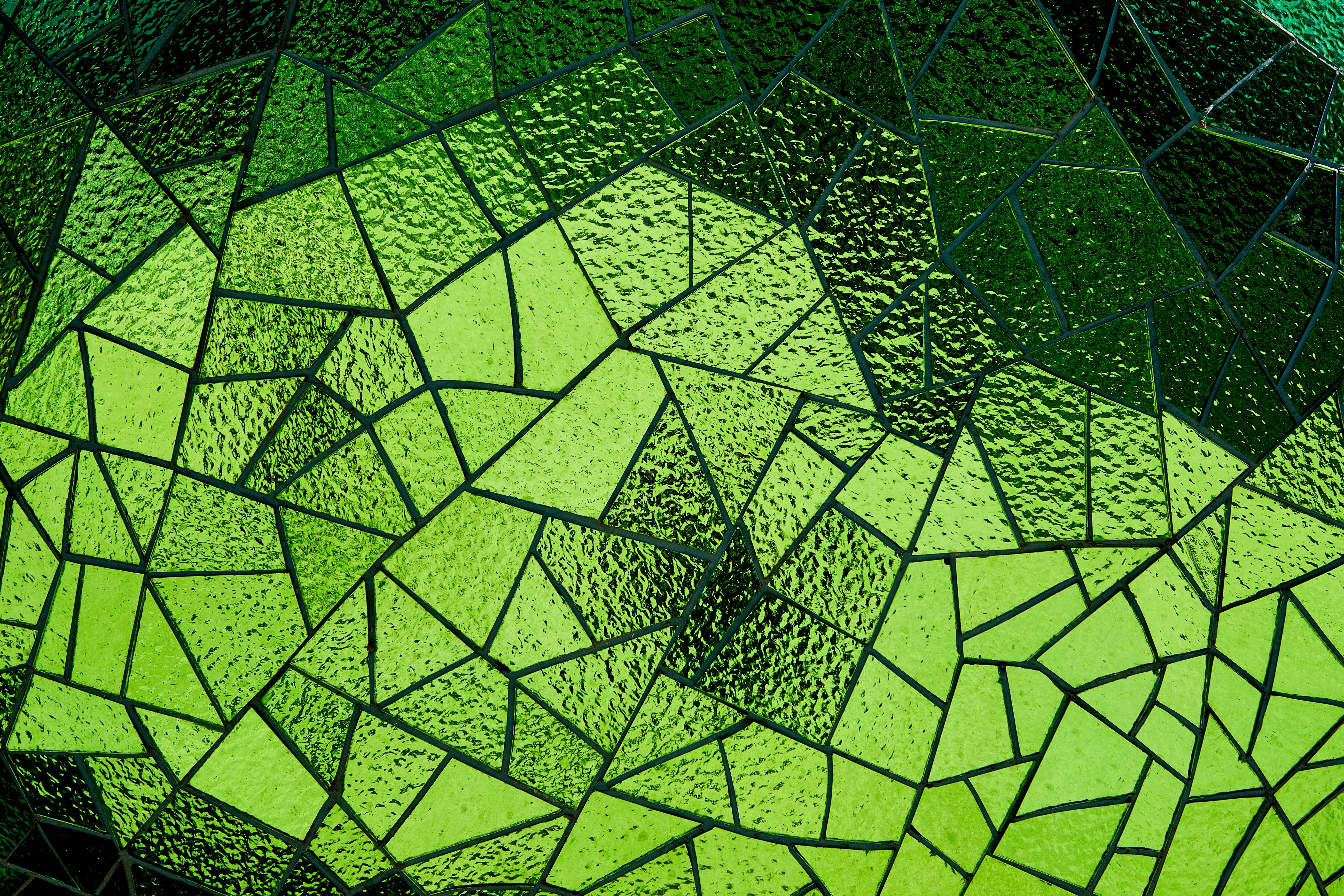 Description: A close up of a green glass window with a pattern of squares and rectangles on it's surface.