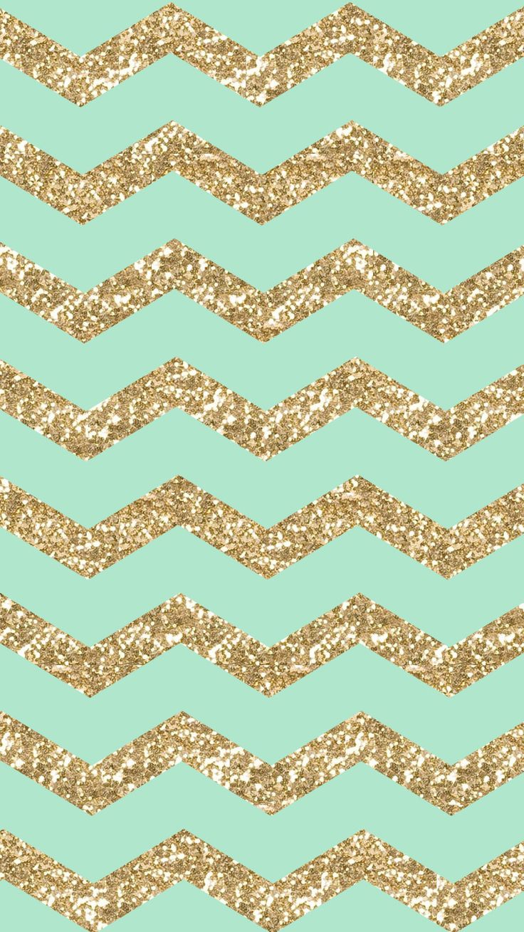 Description: A green and gold chevroned background with glitters on it's edges and a gold glitter effect.