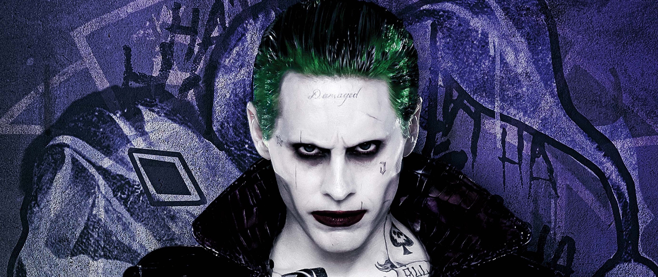 Description: A man with green hair and a black jacket with tattoos on his face and chest.
