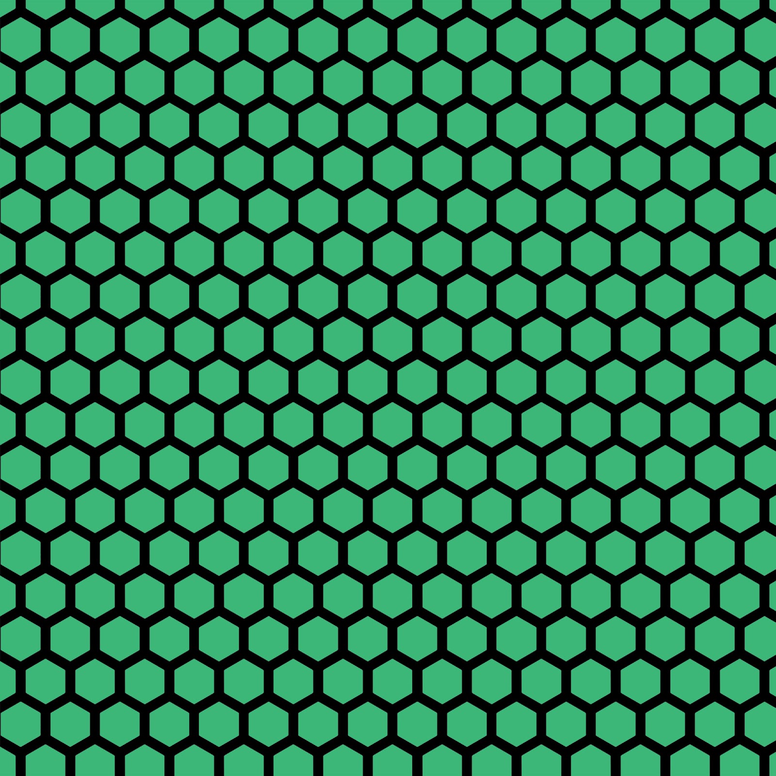 Description: A green background with a hexagonal pattern on it's side and a black background with a hexagonal pattern on the other side.