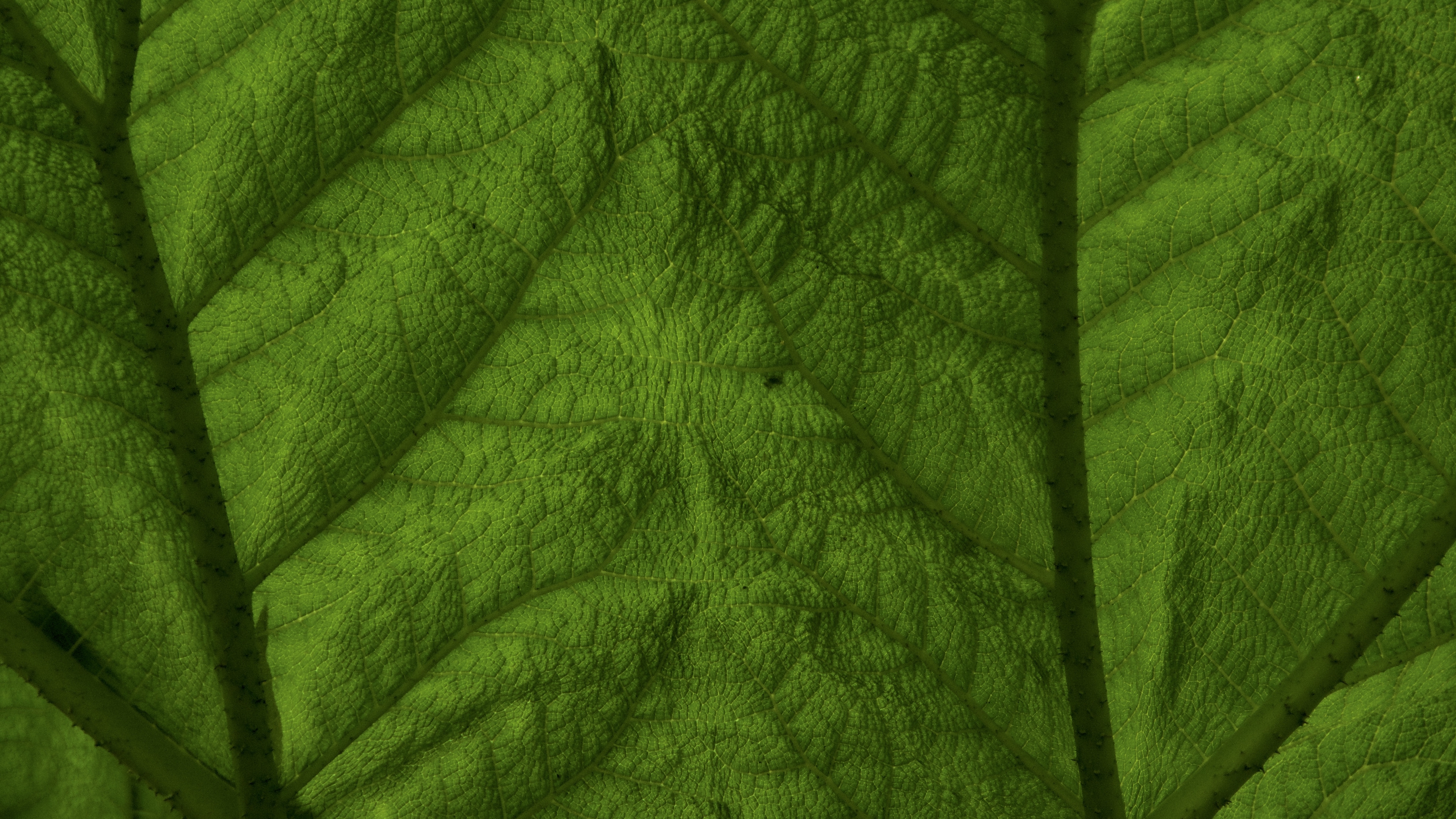 Description: A close up of a green leaf with a black background and a white border around the edges of the leaf.