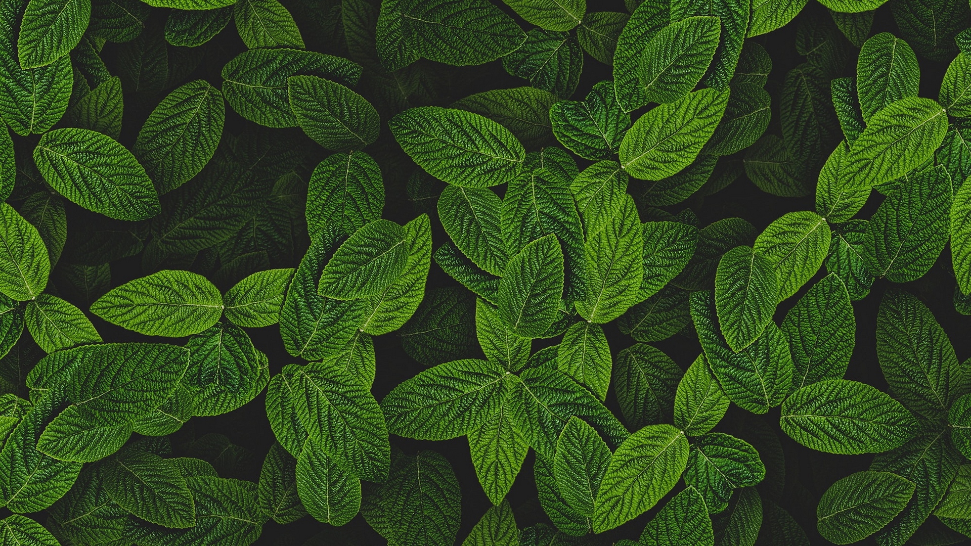 Description: A close up of a green leafy plant with lots of leaves on it's sides and a black background.